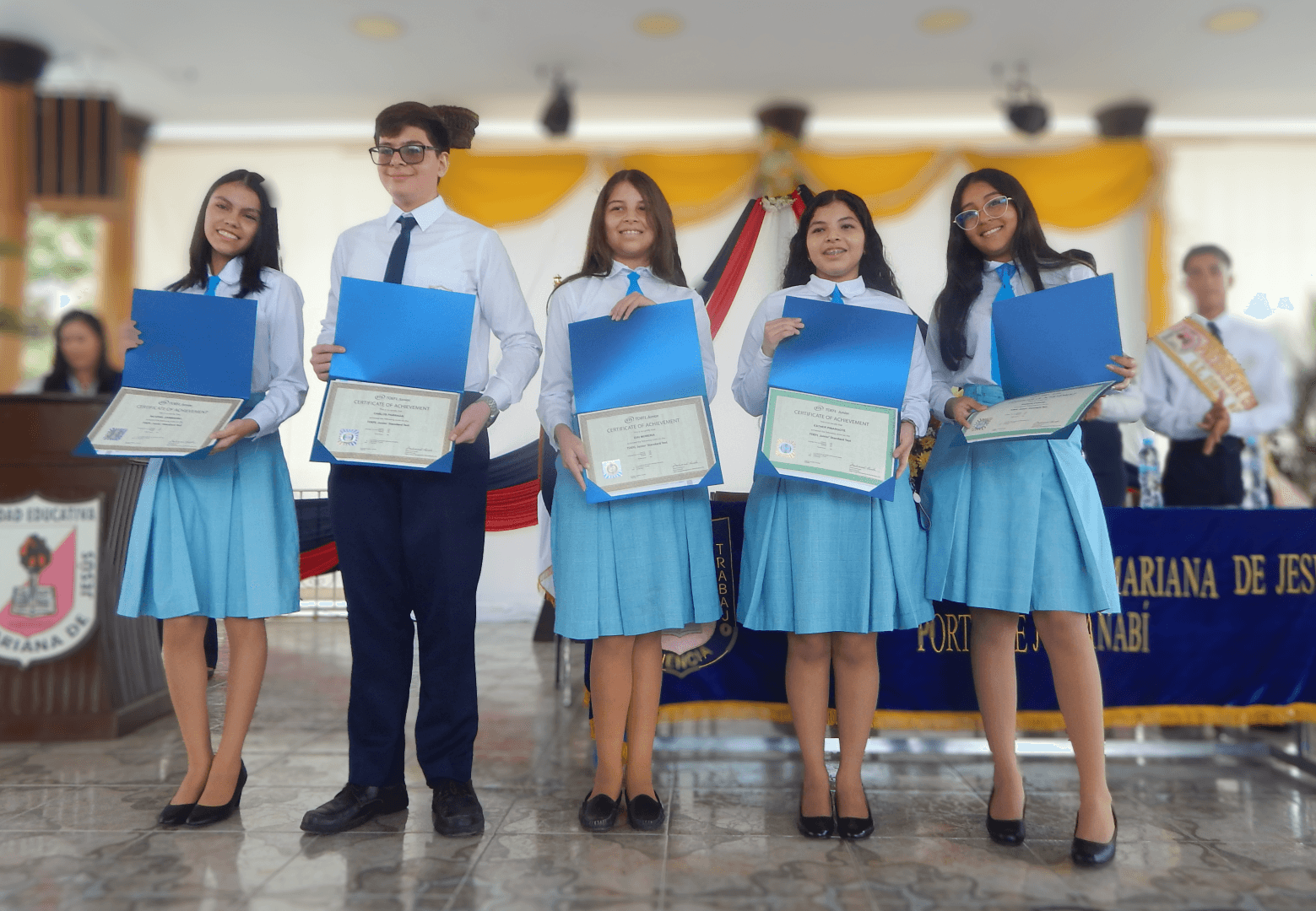¡Felicitaciones a todos los estudiantes destacados de la Unidad Educativa Santa Mariana de Jesús! Su esfuerzo y dedicación han sido reconocidos y celebrados. Cada uno de ustedes ha demostrado que, con perseverancia y pasión, se pueden alcanzar grandes logros. Sigan adelante, persigan sus sueños y recuerden que cada paso que dan los acerca más a sus metas. ¡Estamos muy orgullosos de ustedes!